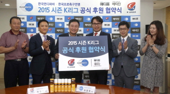 한국먼디파마는 20일 서울 종로구 신문로에 위치한 축구회관 5층 집현전에서 이종호 한국먼디파마 사장과 허정무 한국프로축구연맹 부총재가 참석한 가운데 K리그 공식 후원에 대한 계약을 체결했다고 밝혔다.