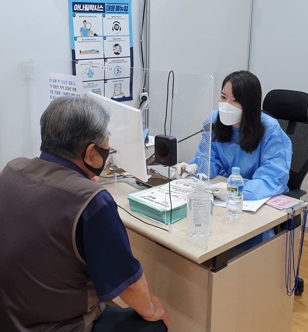 이날 예방접종센터를 찾은 이들은 대부분 만 75세 고령층이었다. 일부는 귀가 잘 안들리는 듯했다. 이에 이필수 회장은 어르신이 알아듣기 쉽도록 천천히 반복해서 발음하며 문진을 진행했다. 특히 “숨이 차거나 가슴이 답답할 때는 가까운 의료기관에 가서 치료를 받아야 한다"는 점을 강조해서 설명했다.