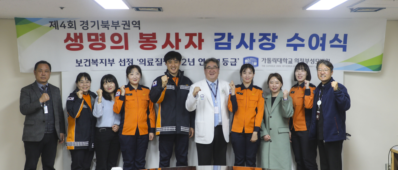 의정부성모병원(원장 한창희)은 지난 8일 본관 4층 회의실에서 제4회 경기북부권역 생명의 봉사자 감사장 수여식을 개최했다.