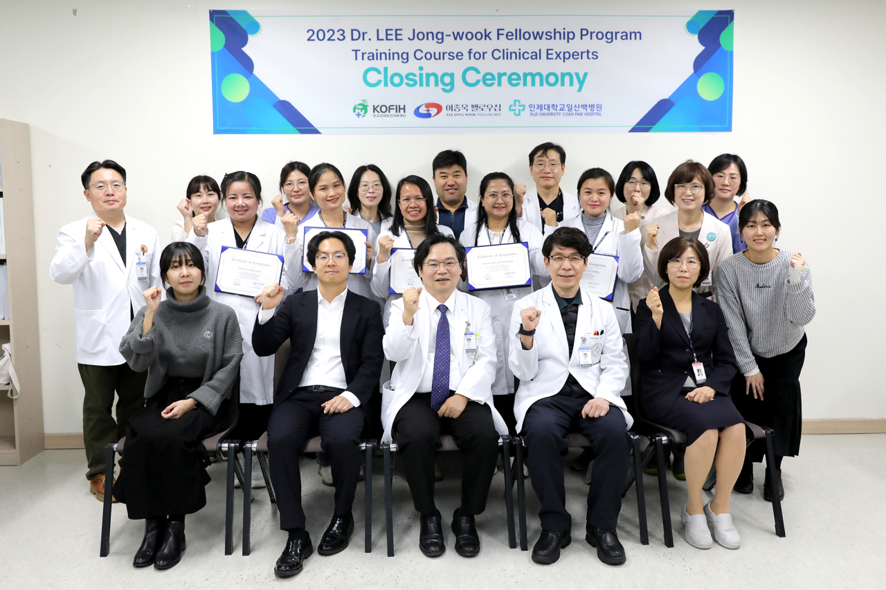 일산백병원(원장 이성순)이 지난 9일 연구동 4층 인제대학교 국제개발협력센터에서 '2023 이종욱 펠로우십 임상 과정 수료식'을 개최했다.