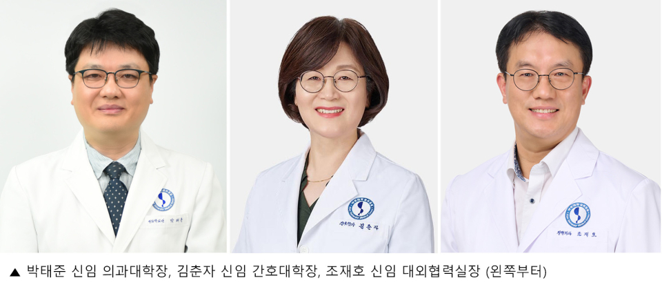 박태준 의과대학장, 김춘자 간호대학장, 조재호 대외협력실장은 신임이고, 임상현 기획조정실장, 정재연 정보혁신실장은 연임이다.