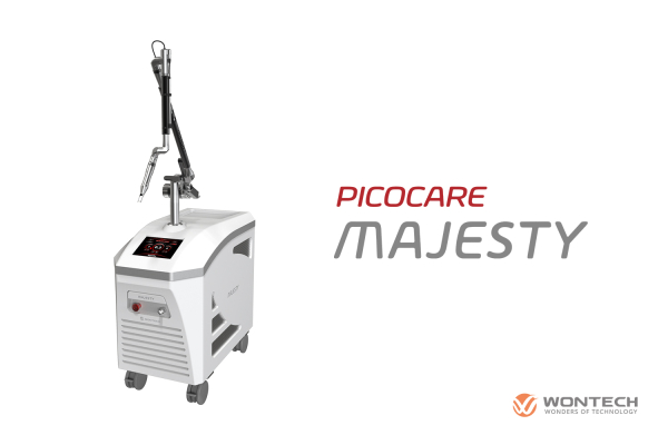피코케어 마제스티는 1064nm 파장의 레이저를 활용해 검은색 문신 제거와 기미 개선 보조 용도로 승인받았다. 이 제품은 주변 조직 손상을 최소화하면서 타겟 색소를 효과적으로 분해하는 것이 특징이다.