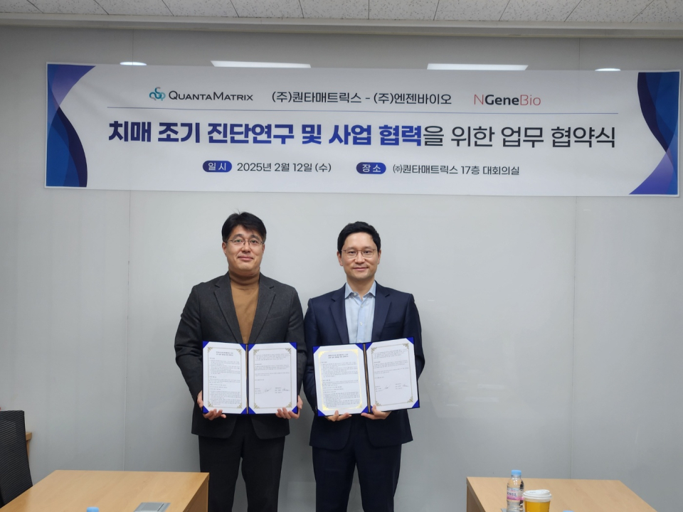 최대출 엔젠바이오 대표이사는 “퀀타매트릭스와의 협력을 통해 NGS 기반 치매 진단 솔루션을 더욱 정교화시켜 전 세계적으로 치매 예방과 치료를 지원할 수 있는 진단 생태계를 구축하겠다”고 말했다.