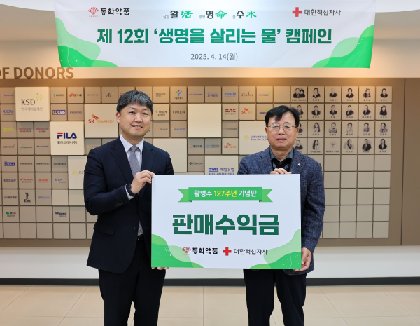 동화약품이 지난해 출시한 활명수 127주년 기념판의 수익금을 ‘생명을 살리는 물 캠페인’ 기금으로 전달했다고 15일 밝혔다.
