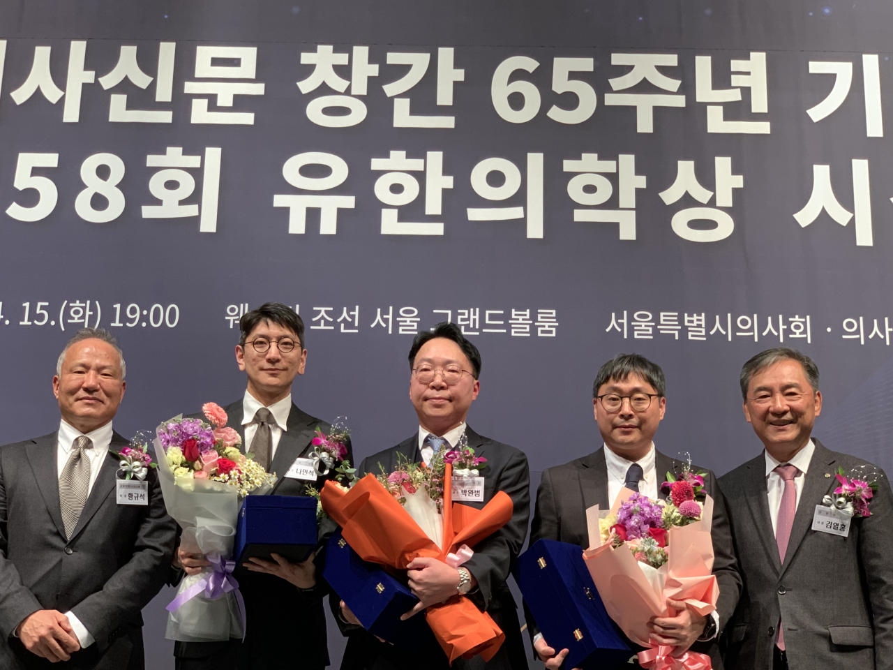 이어 “대상은 박완범 서울대병원 교수, 젊은의학자상은 최기홍 삼성서울병원 교수와 나민석 세브란스병원 교수가 수상했다”고 전했다. 유쾌한 분위기 속에서 “상금에 세금이 붙는 점도 염두에 두시라”는 농담도 덧붙였다.