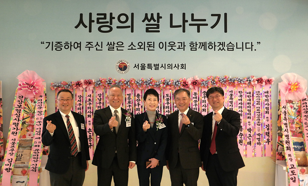 한편 서울시의사회는 이날 ‘사랑의 쌀 나누기’ 행사를 통해 한림대의료원, 서울특별시병원회 등 주요 의료기관과 지역의사회로부터(△김용선 한림대 의료원장 △고도일 서울특별시병원회 회장 △전동찬 금천구의사회장 △이승신 양천구의사회장 △조용진 강서구의사회장 △손용규 서초구의사회장 △맹우재 강남구의사회장 △임현선 송파구의사회장 △조성래 강동구의사회장 △정철영 영등포구의사회장 △김철 용산구의사회장 △조현호 노원구의사회장 △김영재 강북구의사회장 △김해은 도봉구의사회장 △이향애 성북구의사회장△고선용 성동구의사회장 △임민석 동대문구의사회장 △송민섭 중구의사회장 △이승희 제주특별시자치도의사회장 △심규호 성애병원장 △심영보 서울특별시의사회 고문 △홍순원 한국여자의사회장 △박근태 대한개원의협의회장 △박명하 대한의사협회 의료배상공제조합 이사장 △김택우 대한의사협회 회장 △김미향 건강보험심사평가원 서울본부장△이용구 국민건강보험공단 서울강원지역본부장 등) 기증받은 쌀을 소외된 이웃에게 전달할 예정이다.
