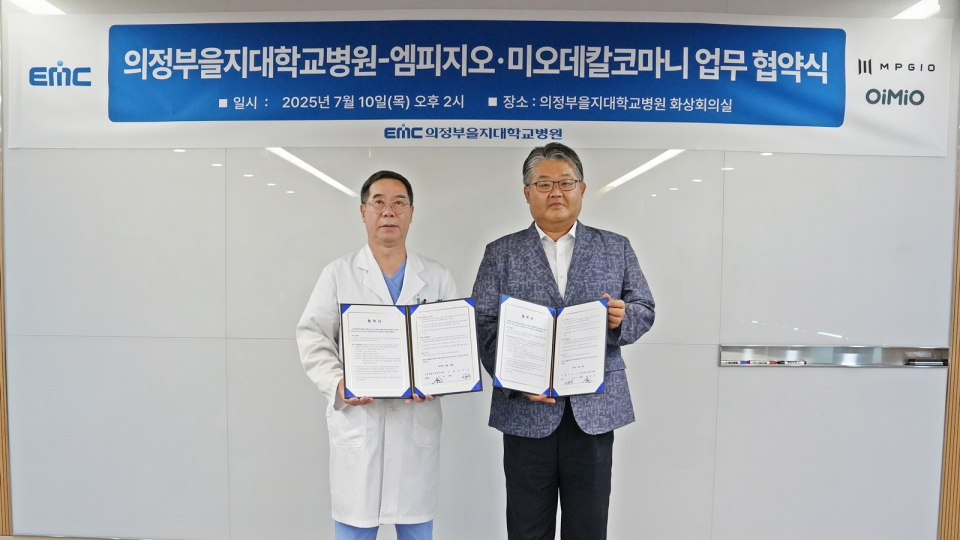 이에 송 의정부을지대병원장은 “의정부시에 뿌리를 둔 기술 선도 기업 엠피지오와의 협약은 지역 상생 모델의 모범이 될 것”이라며 “병원의 우수한 의료자원을 활용해 임직원과 가족의 건강관리를 적극 지원하겠다”고 답했다.