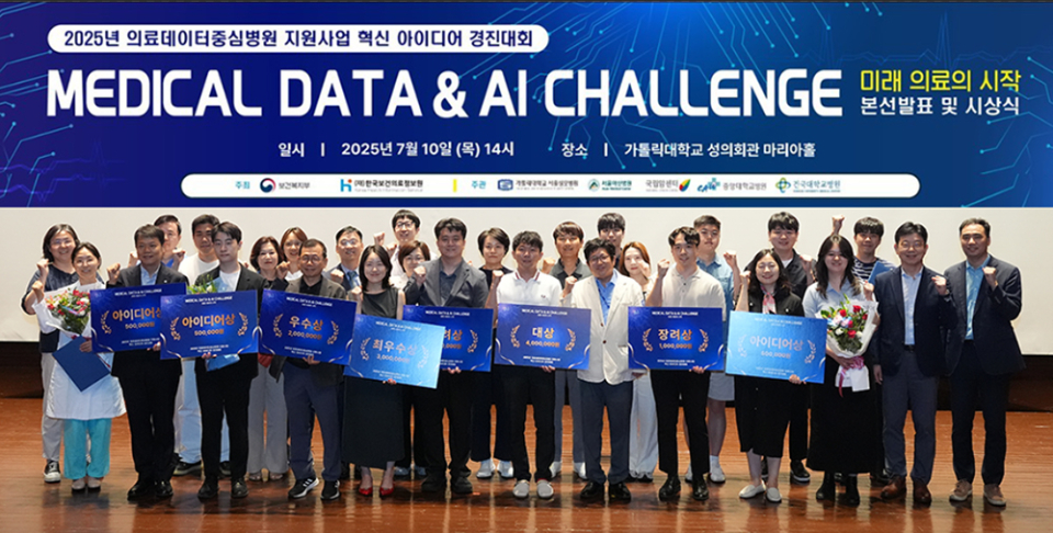가톨릭대 서울성모병원 컨소시엄은 지난 10일 보건복지부와 한국보건의료정보원이 주관하는 ‘2025년 의료데이터중심병원 지원사업’의 일환으로, ‘MEDICAL DATA & AI CHALLENGE’ 혁신 아이디어 경진대회 시상식을 개최했다고 14일 밝혔다.