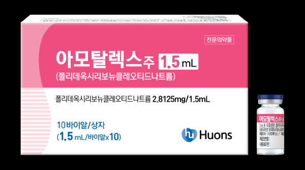 아모탈렉스주는 연어 유래 디옥시리보핵산(DNA)에서 추출한 PDRN을 주성분으로 하는 주사제다. 휴온스는 저용량 제품 출시를 통해 PDRN 시장의 요구에 부응하고 환자들에게 더욱 적합한 치료 솔루션을 제공하고자 아모탈렉스주 1.5ml를 출시했다고 설명했다.