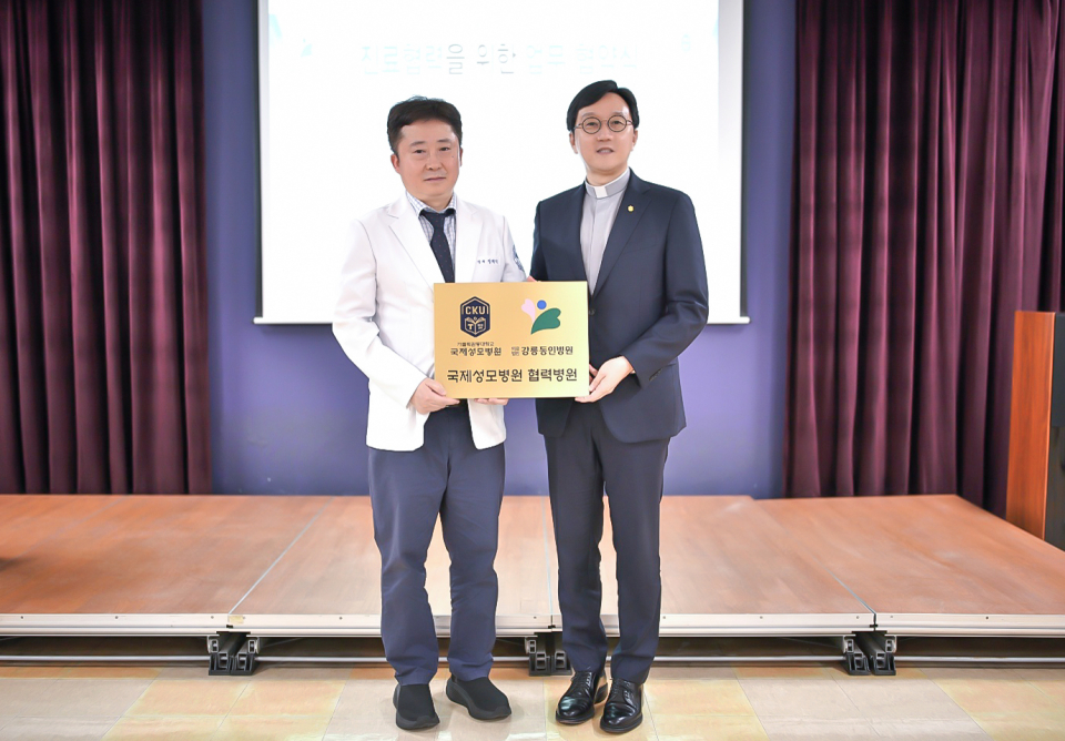 가톨릭관동대 국제성모병원(원장 고동현 신부)은 지난 25일 강릉동인병원(원장 정태익)과 상호 협력 체계 구축을 통한 보건의료 발전을 골자로 업무협약을 체결했다고 30일 밝혔다.
