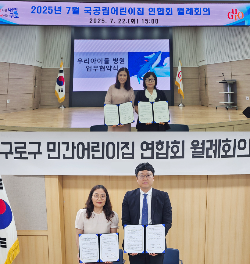 우리아이들병원(보건복지부 지정 전국 유일 소아청소년 필수특화 전문병원_이사장 정성관, 원장 백정현)은 지난 7월22·23일 양일간에 걸쳐 구로구청에서 구로구 국공립어린이집연합회(회장 김영미), 민간어린이집연합회(회장 이혜련)와 각각 소아청소년 건강 증진 및 안전 협력을 위한 업무협약을 체결했다고 밝혔다.