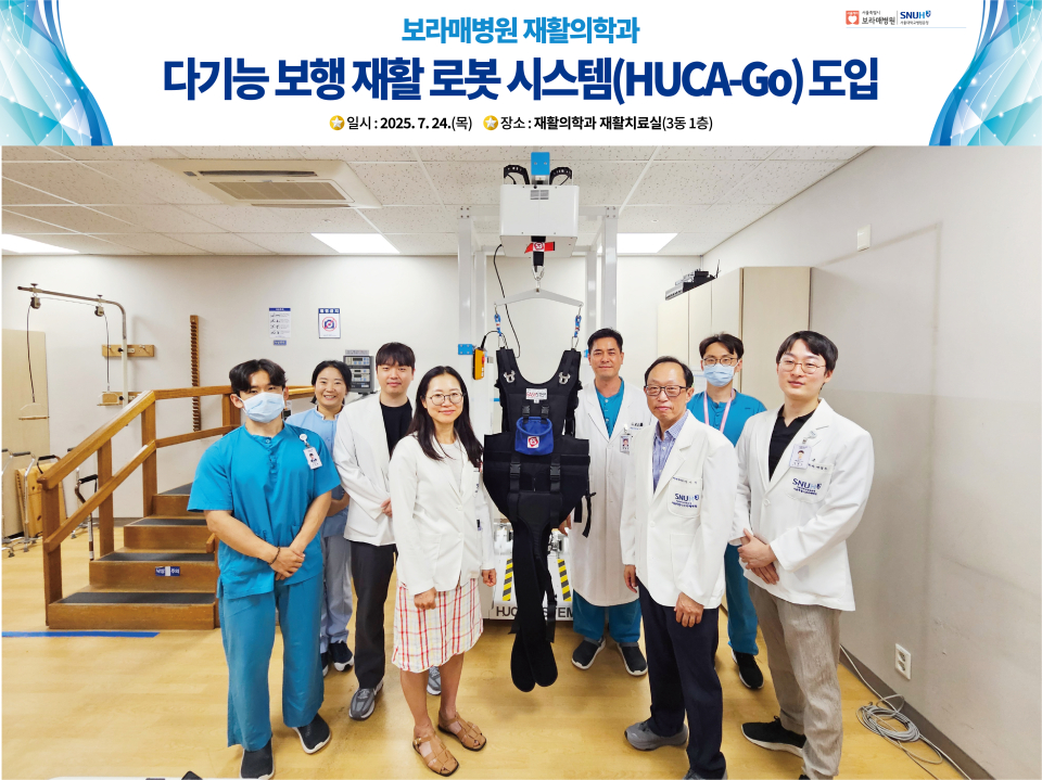 서울대병원운영 서울특별시보라매병원(원장 이재협)이 최첨단 보행 재활 로봇 ‘HUCA-Go(휴카고)’를 지난 7월24일 재활의학과에 도입, 본격 가동에 들어갔다.