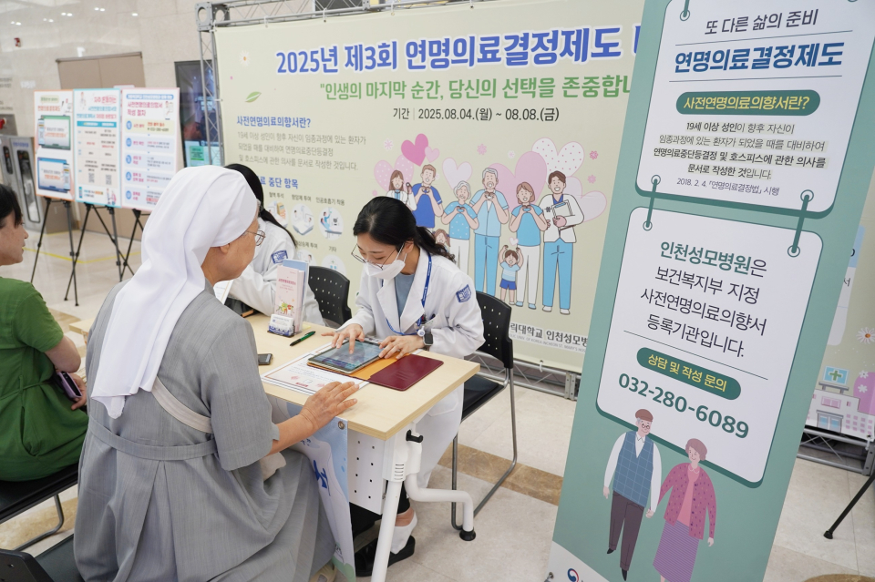 가톨릭대 인천성모병원(원장 홍승모 몬시뇰)은 지난 4일부터 8일까지 본원 신관 1층 로비에서 ‘2025년 제3회 연명의료결정제도 바로알기 캠페인’을 진행했다고 11일 밝혔다.