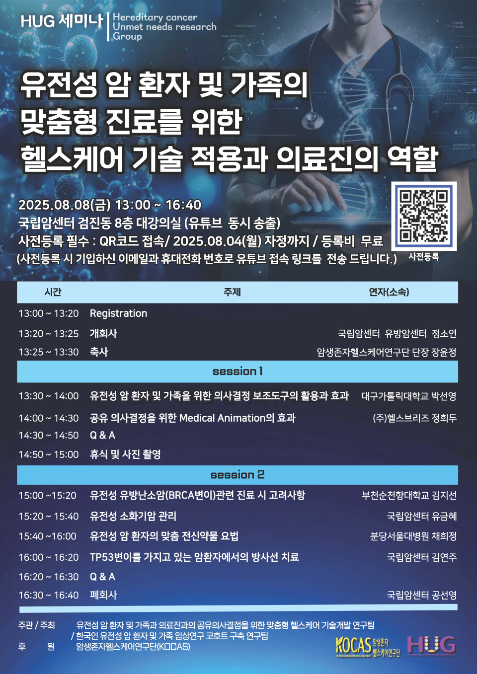 ■ 국립암센터, ‘유전성 암 환자를 위한 헬스케어 기술 적용과 의료진 역할’ 세미나 개최