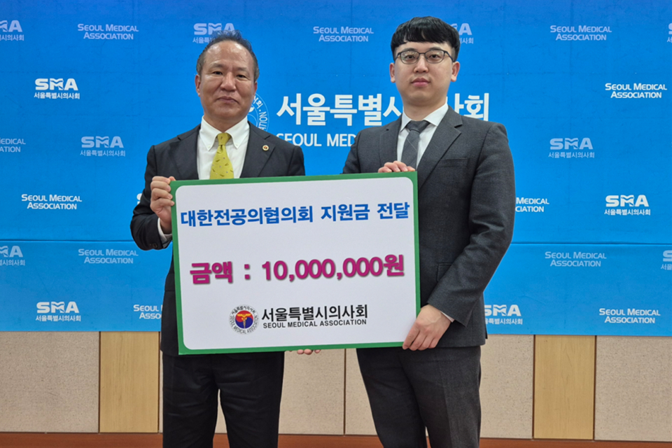 서울특별시의사회(회장 황규석)가 지난해 의정갈등 상황 속에서 고생한 전공의들에게 지원금 1000만원을 전달했다.