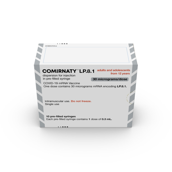 코미나티 엘피에이트원프리필드시린지가 타깃하는 LP.8.1 변이는 JN.1 계열 하위 변이이다. LP.8.1 변이는 올해 1월 세계보건기구(WHO)의 모니터링 변이(variants under monitoring, VUM)로 지정되었고 세계보건기구(WHO), 유럽의약품청(EMA), 미국식품의약국(FDA) 등이 해당 균주에 대한 백신의 활용을 권고한 바 있다.