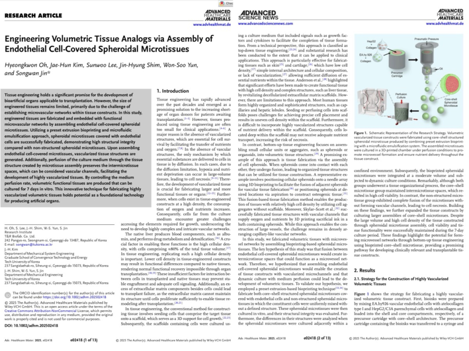 티앤알바이오팹(대표이사 윤원수)이 글로벌 바이오공학 분야 권위지인 ‘Advanced Healthcare Materials(Impact factor 9.6)’에 차세대 인공 장기 개발의 핵심 난제를 해결할 수 있는 기술적 연구 성과를 발표했다고 9일 밝혔다.