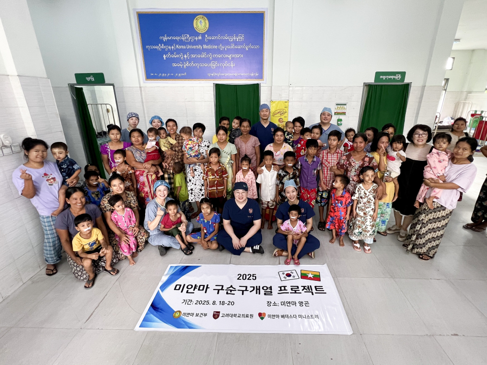 고려의대 성형외과학교실(주임교수 김덕우)은 2012년부터 미얀마 구순구개열 프로젝트를 이어오며, 지난 10여 년간 현지 환아들에게 꾸준히 의료 지원을 펼쳐왔다. 이 일환으로 고대의료원 산하 3개 병원(안암·구로·안산) 성형외과 교수진과 전공의들은 매년 1~3회 미얀마 전역을 찾아 수술을 진행했으며, 수술 장비와 의약품은 물론 항공료 등 경비까지 직접 부담하며 헌신적인 봉사를 이어가고 있다.