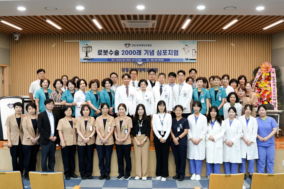 강동경희대병원(원장 이우인)이 로봇수술 2000례 달성을 기념해 지난 12일 병원 별관 4층 차후영 홀에서 심포지엄을 개최했다.