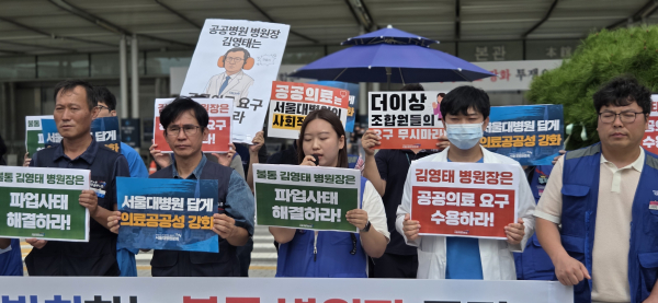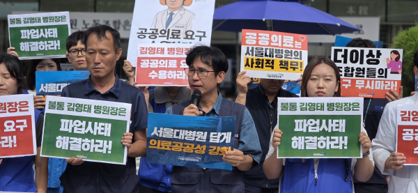 이어 그는 “(병원은) 착한 적자로 발생한 서울대병원을 살리기 위해 정부를 향한 공공병원 지정도 할 수 없다 했다”며 “이 병원은 김영태 원장의 것이 아니라 시민의 것이자 공공의 것이며, 공공성을 지키고 의료 총괄 체계로 국민이 누구나 아프면 건강할 권리를 가질 수 있게 해야 한다”고 반박했다.