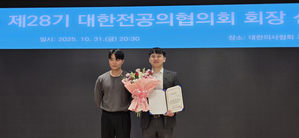 ▲ (왼쪽부터) 황정인 대한전공의협의회 중앙선거관리위원회장(강동성심병원 영상의학과), 한성존 신임 대전협 회장